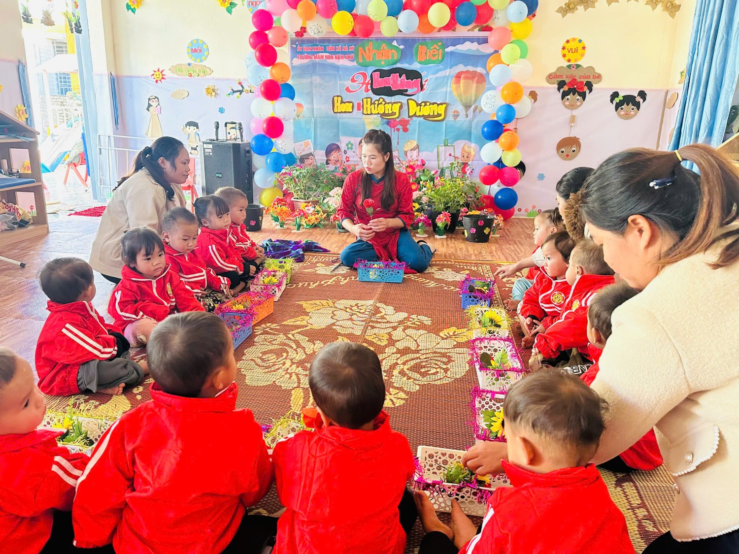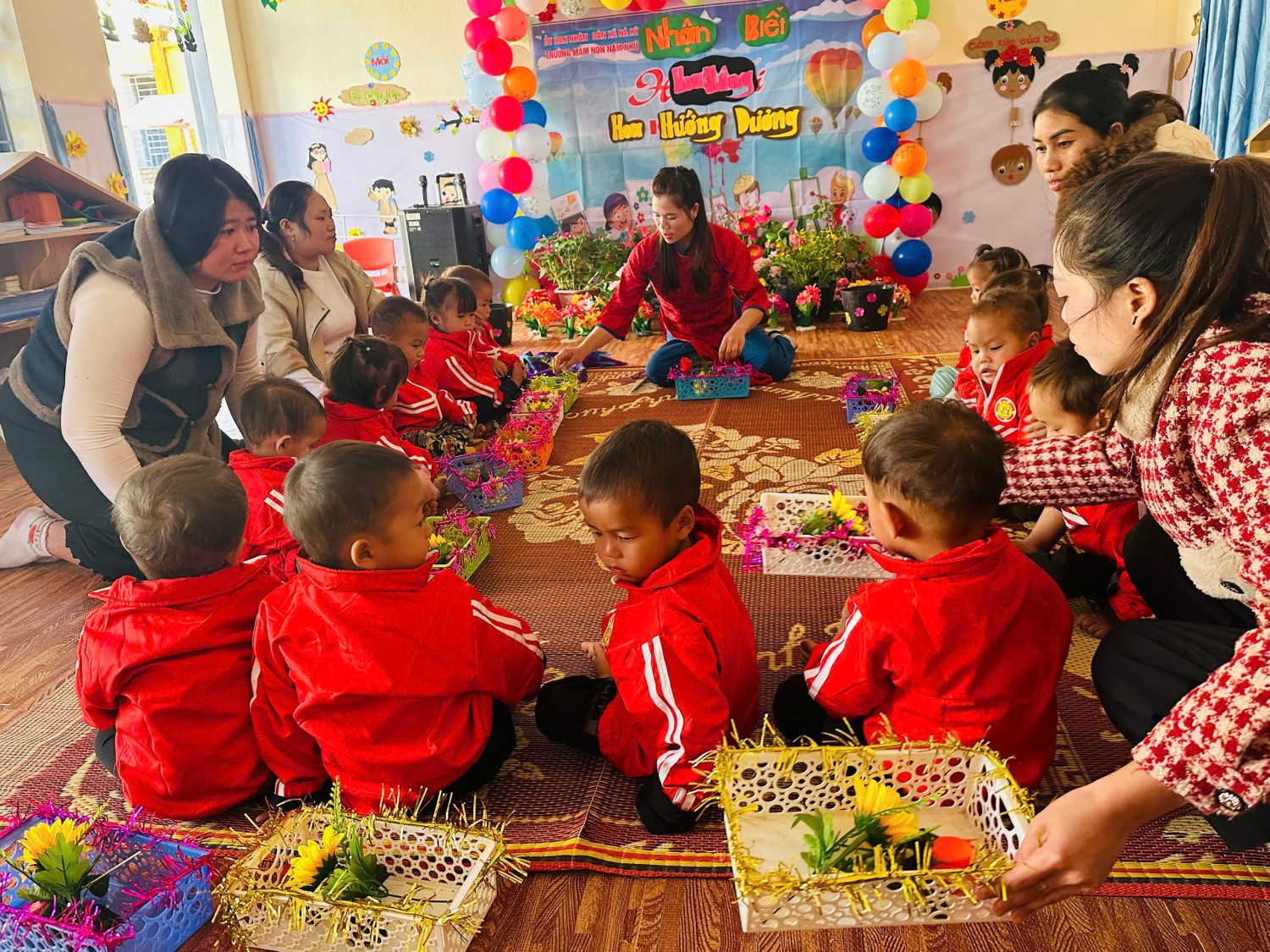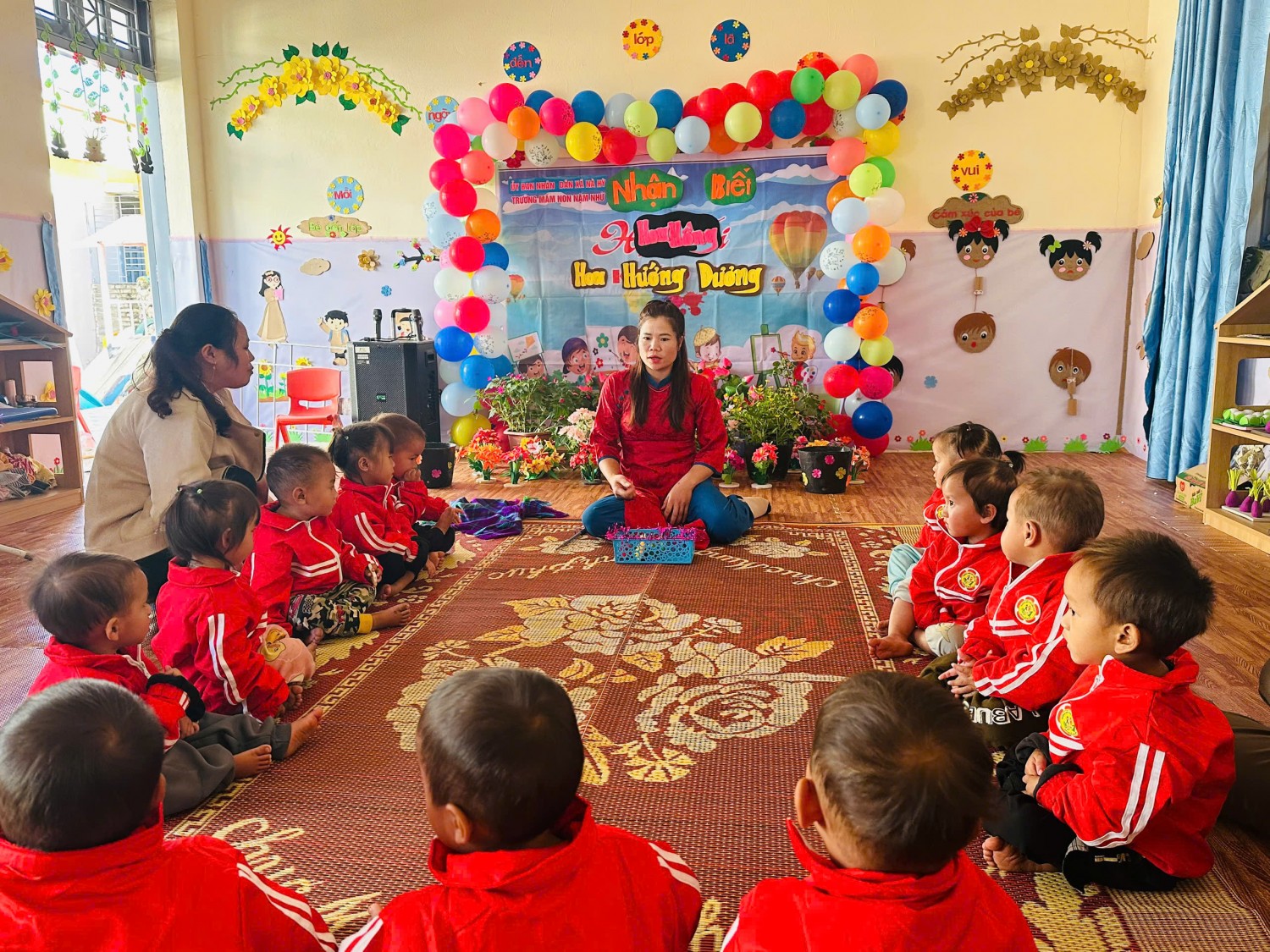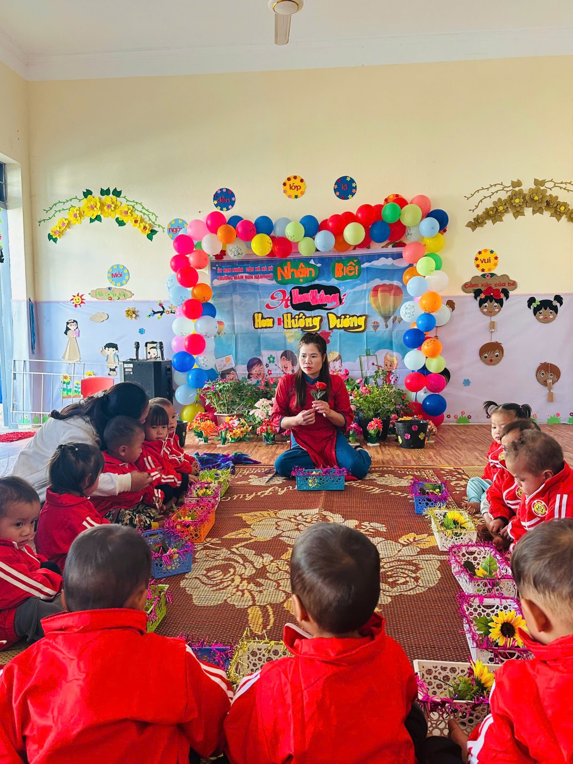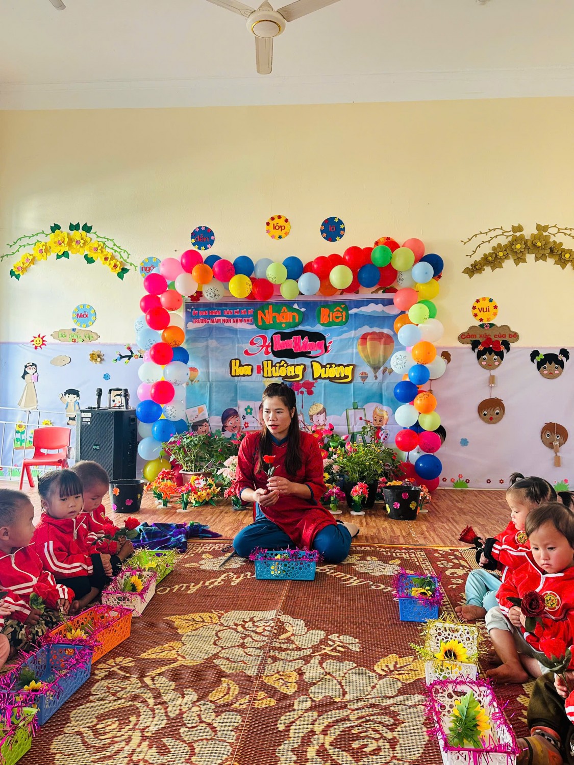 Căn cứ vào tình hình thực tế của nhà trường. Ngày 28/11/2025. Nhà trường triển khai và tổ chức dạy chuyên đề với 2 nội dung. ND1: Trẻ 25-36 tháng tuổi Nhận biết: Hoa Hồng, Hoa hướng dương, Do đ/c: Cà Thị Đôi thực hiện. ND2: LQVH: Kể chuyện cho trẻ nghe: "Ba cô gái" trẻ 5 tuổi. Do đ/c Lò Thị Nga thực hiện.