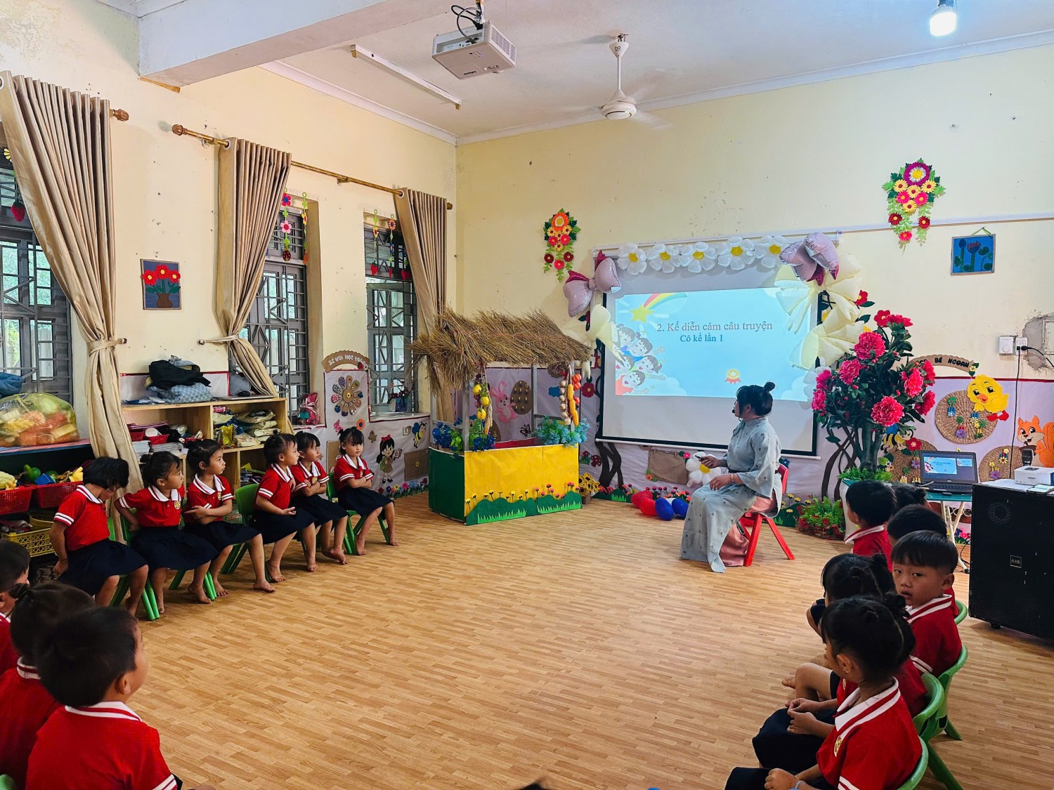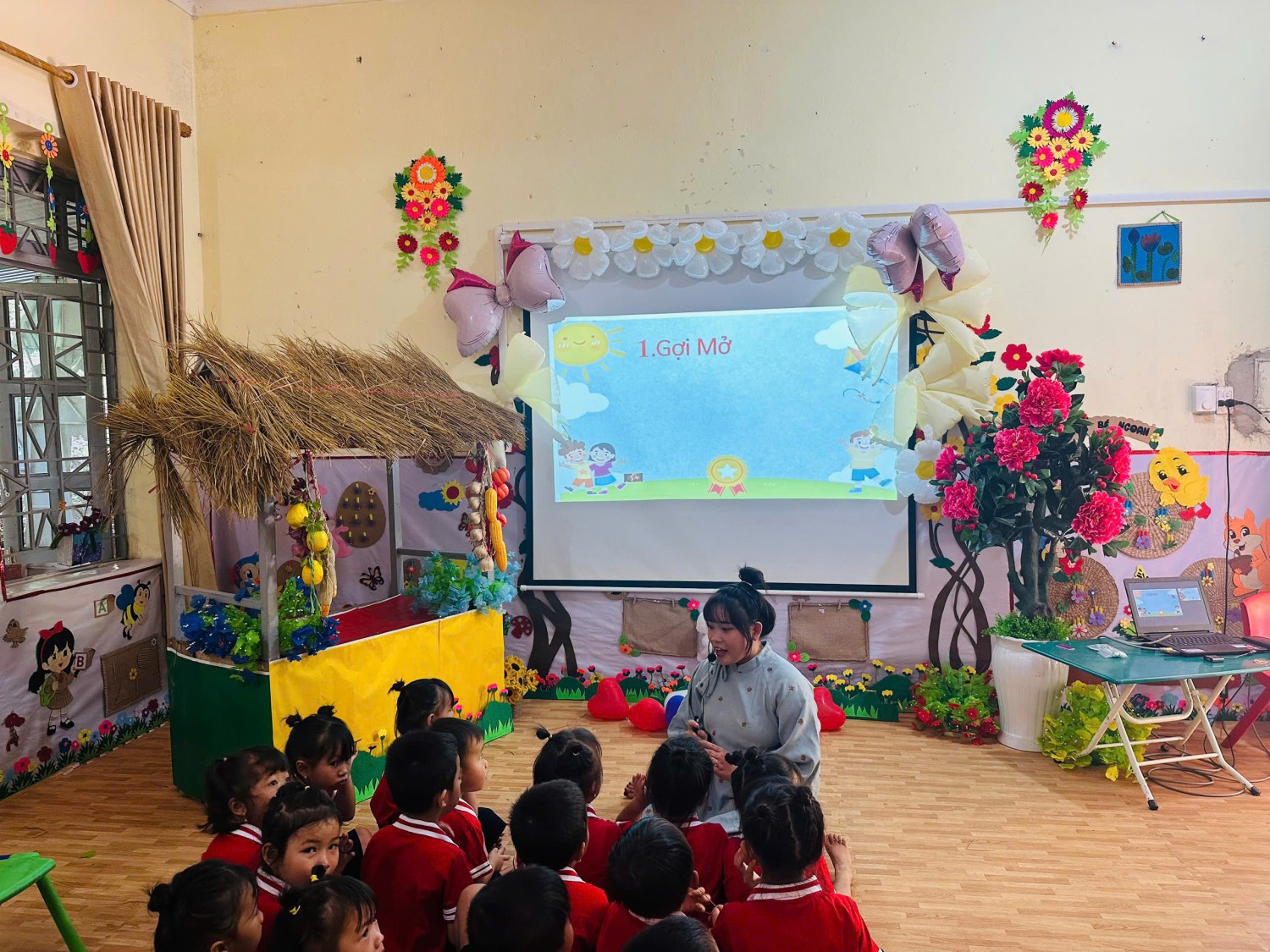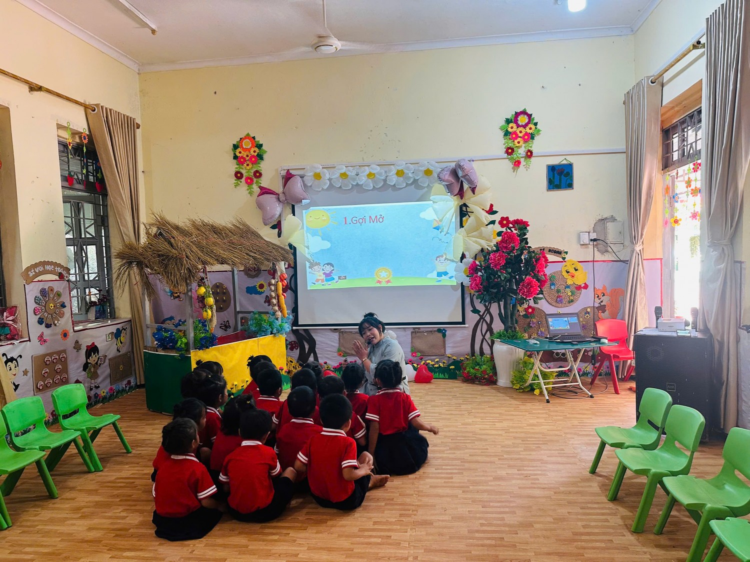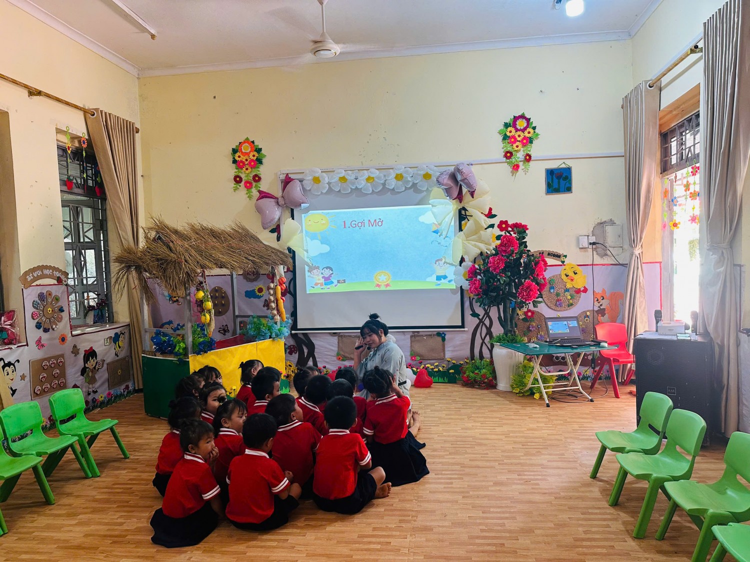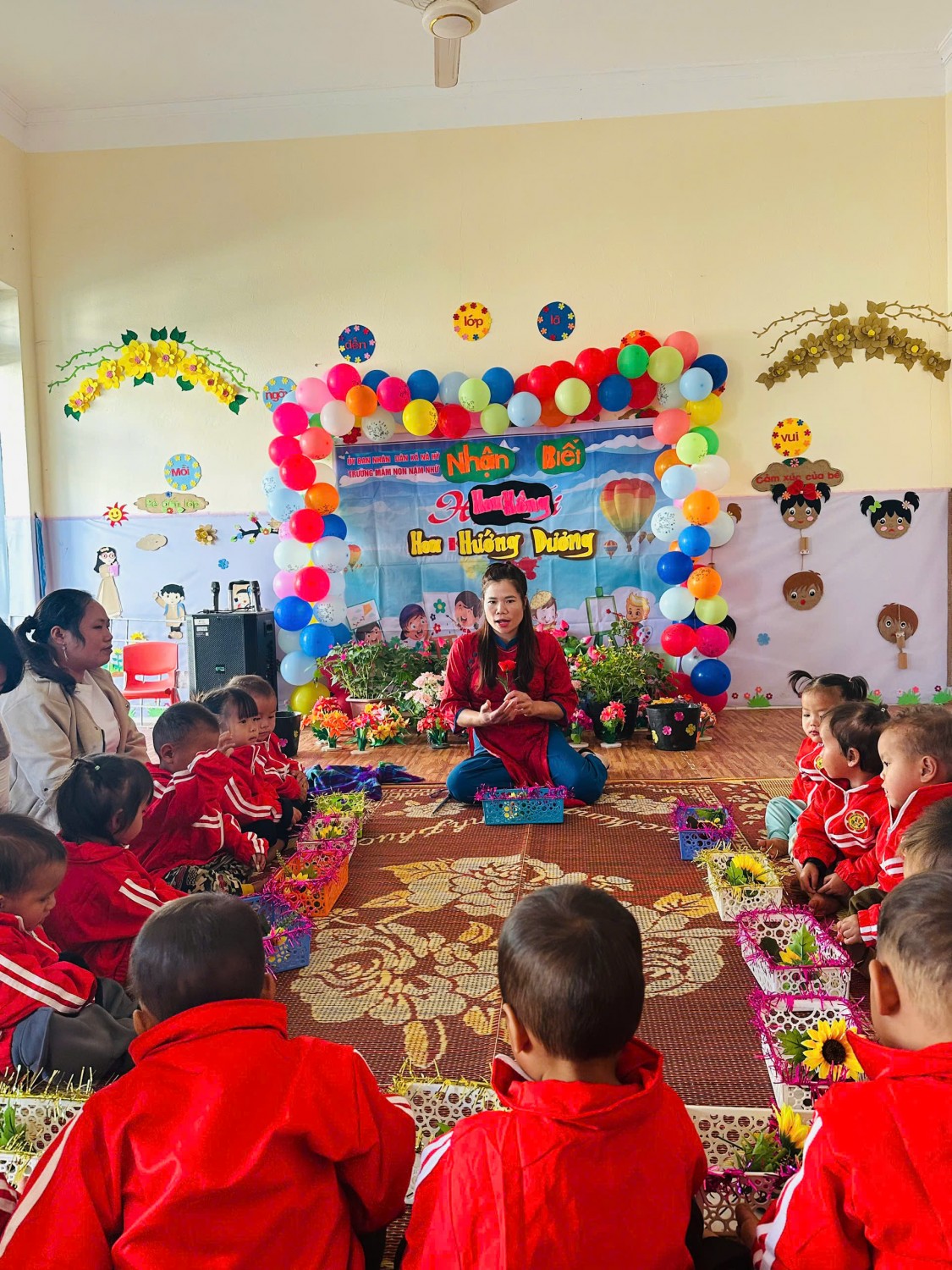 Căn cứ vào tình hình thực tế của nhà trường. Ngày 28/11/2025. Nhà trường triển khai và tổ chức dạy chuyên đề với 2 nội dung. ND1: Trẻ 25-36 tháng tuổi Nhận biết: Hoa Hồng, Hoa hướng dương, Do đ/c: Cà Thị Đôi thực hiện. ND2: LQVH: Kể chuyện cho trẻ nghe: "Ba cô gái" trẻ 5 tuổi. Do đ/c Lò Thị Nga thực hiện.