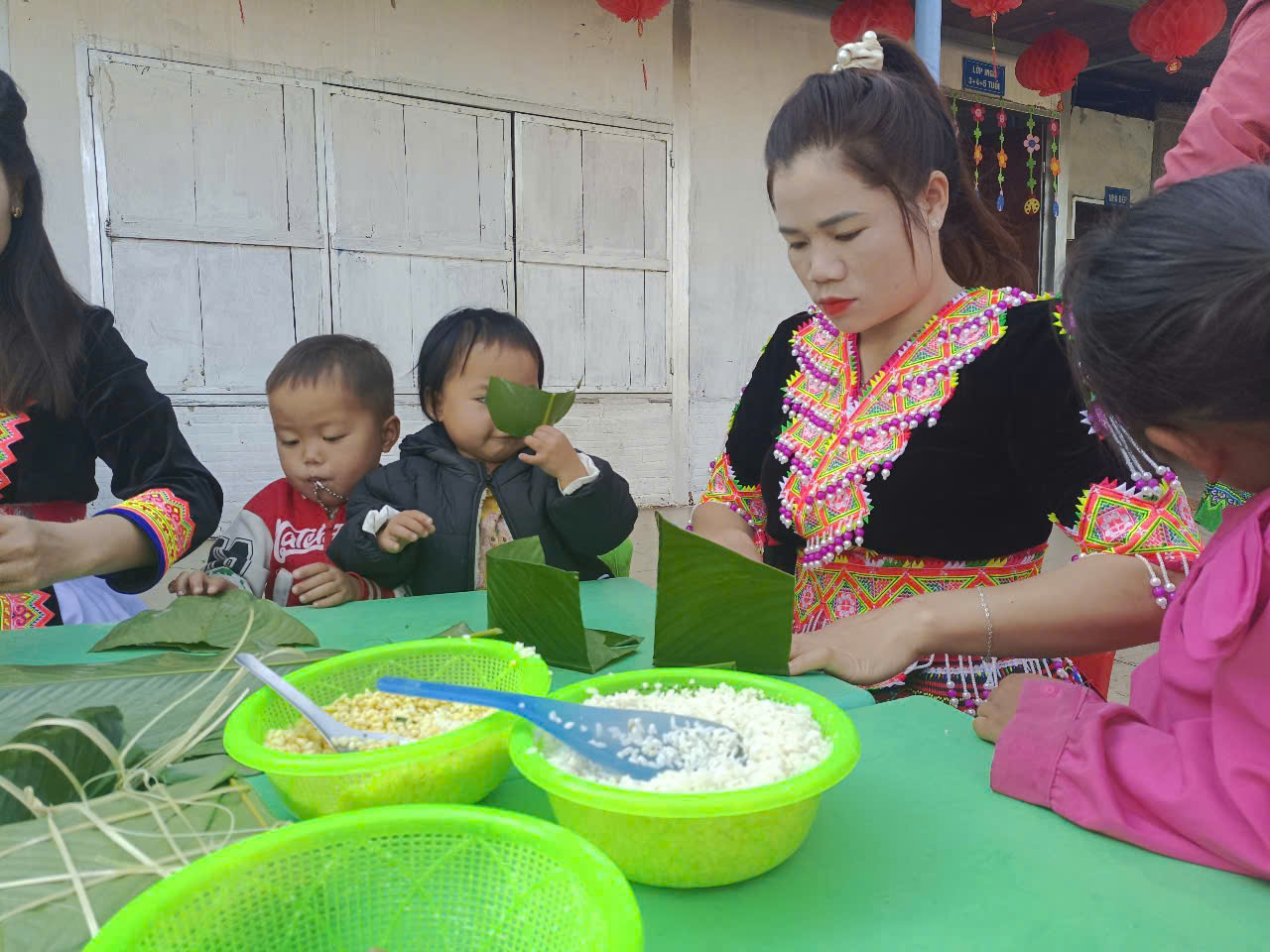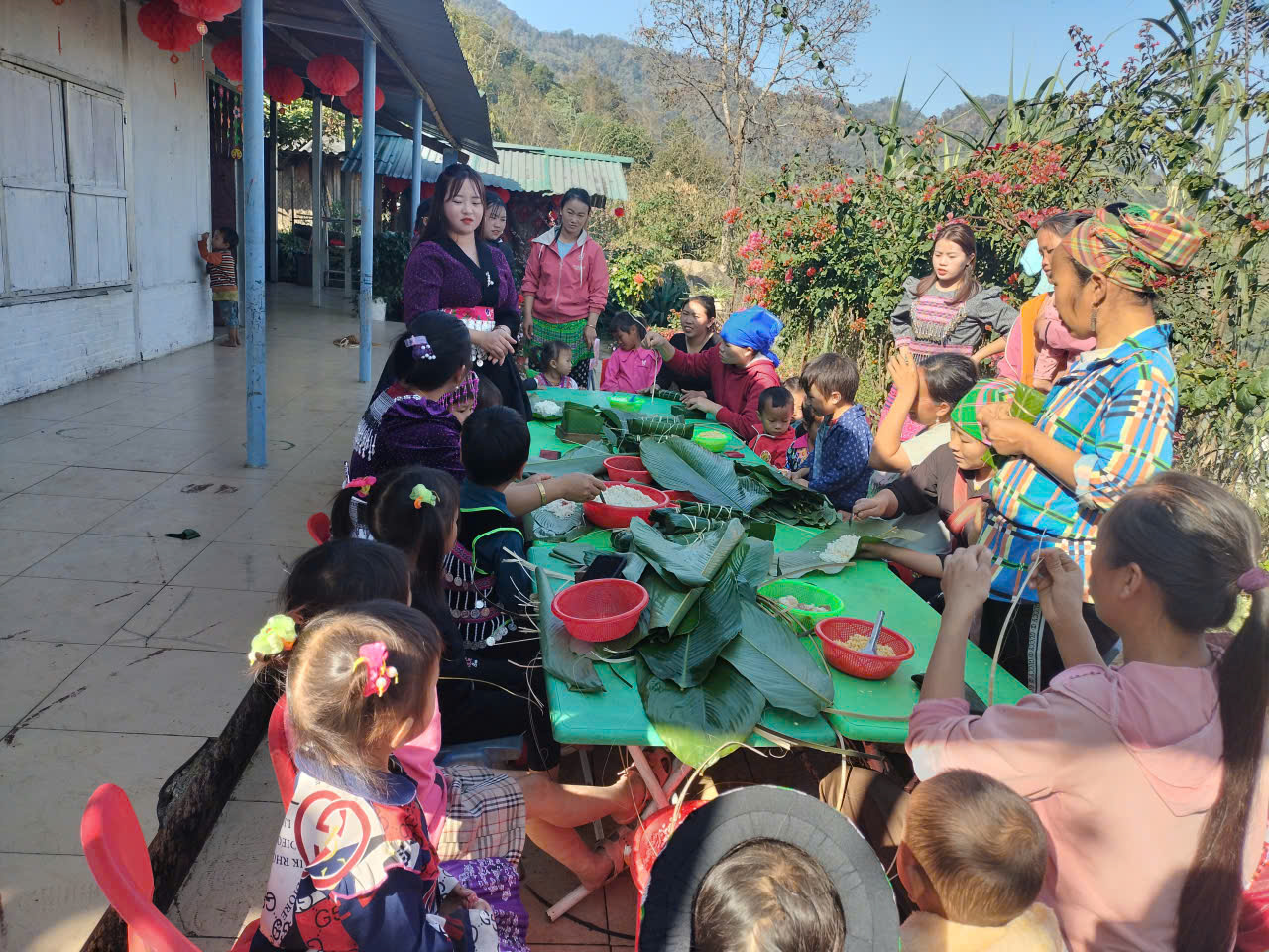 Nhân dịp chào đón xuân Bính Ngọ 2026. Điểm bản Nậm Chua 3( Nhóm Cháy) "Gói bánh Chưng xanh" cùng trẻ