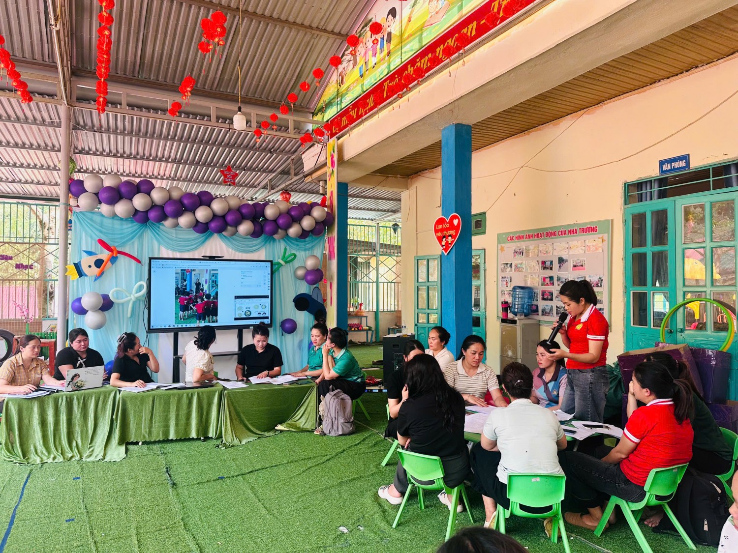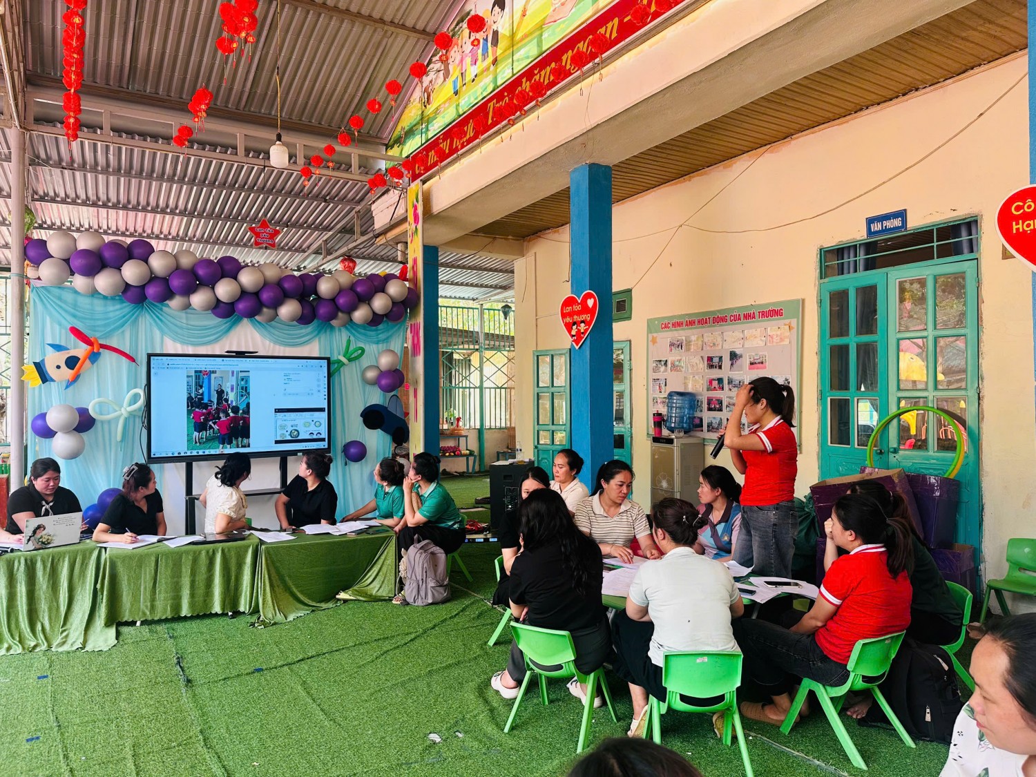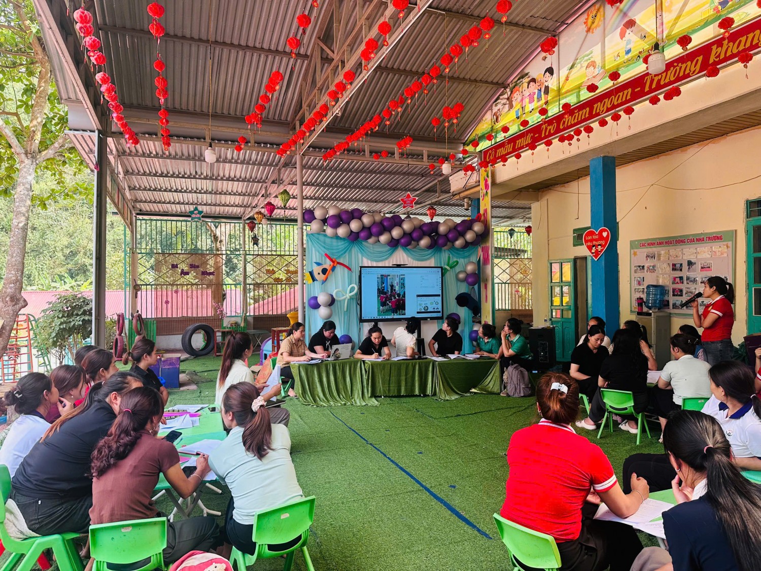Căn cứ vào công văn số 2717/SGDĐT-GDMNTH Ngày 11/09/2025 về việc tổ chức các hoạt động chuyên môn theo cụm trường cấp học mầm non. Căn cứ vào tình hình thực tế tại trường. Nhà trường đã tiến hành tổ chức sinh hoạt chuyên môn trường với 2 nội dung tiết dạy Lĩnh vực Phát triển thẩm mỹ và phát triển thể chất. Và tổ chuyên môn tổ chức nội dung hoạt động theo nghiên cứu bài học.