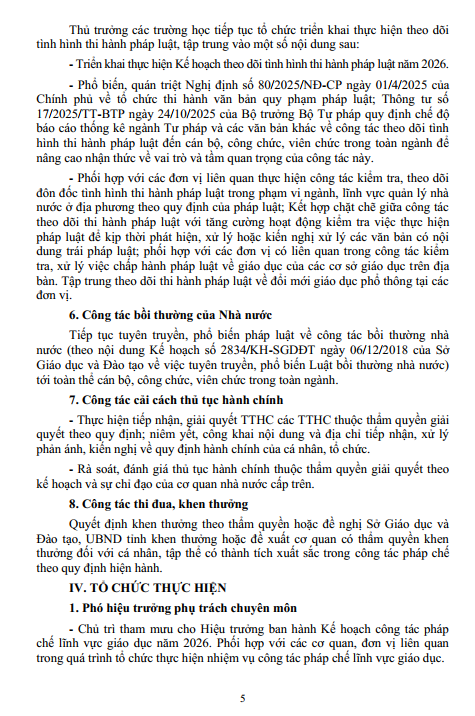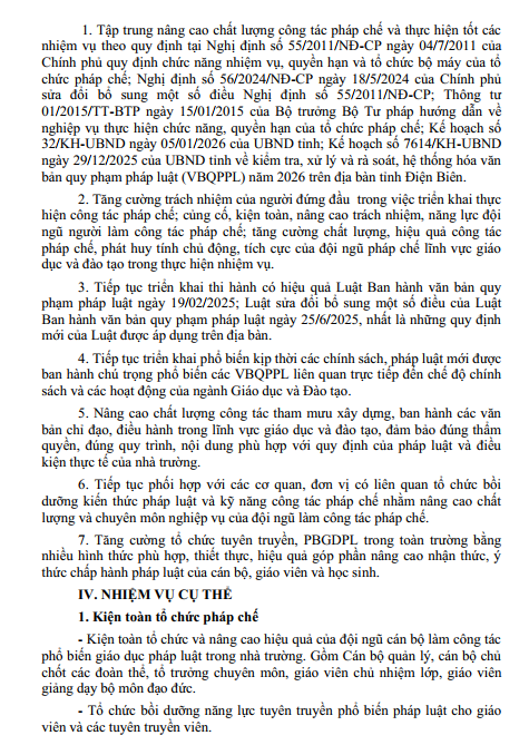 Kế hoạch thực hiện công tác pháp chế năm 2026