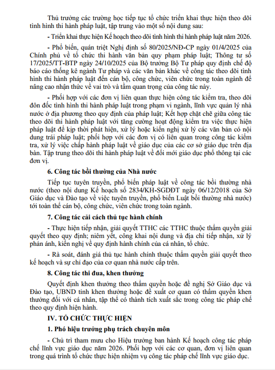 Kế hoạch thực hiện công tác pháp chế năm 2026