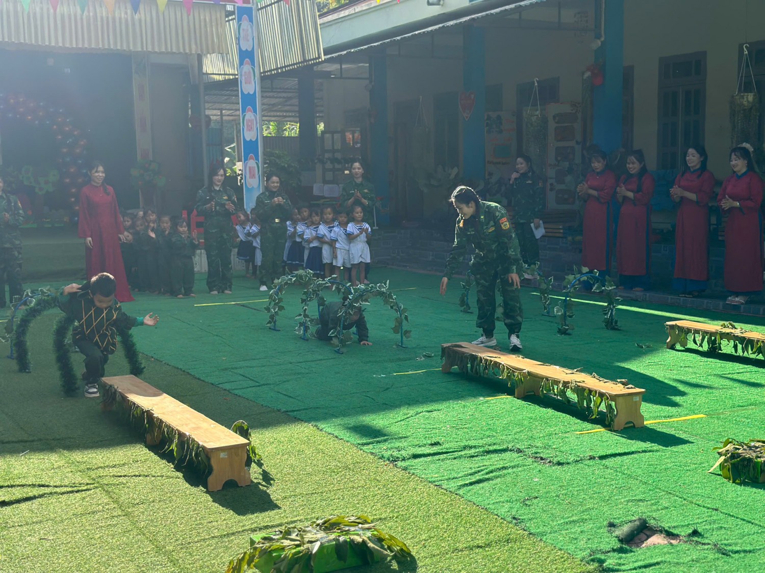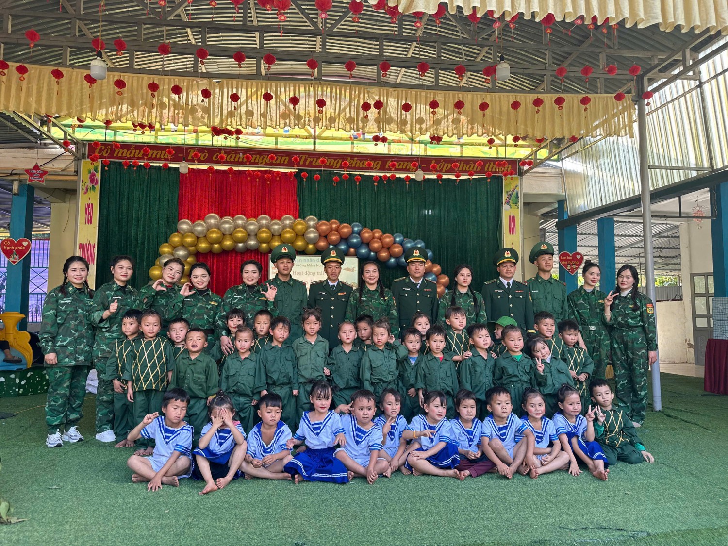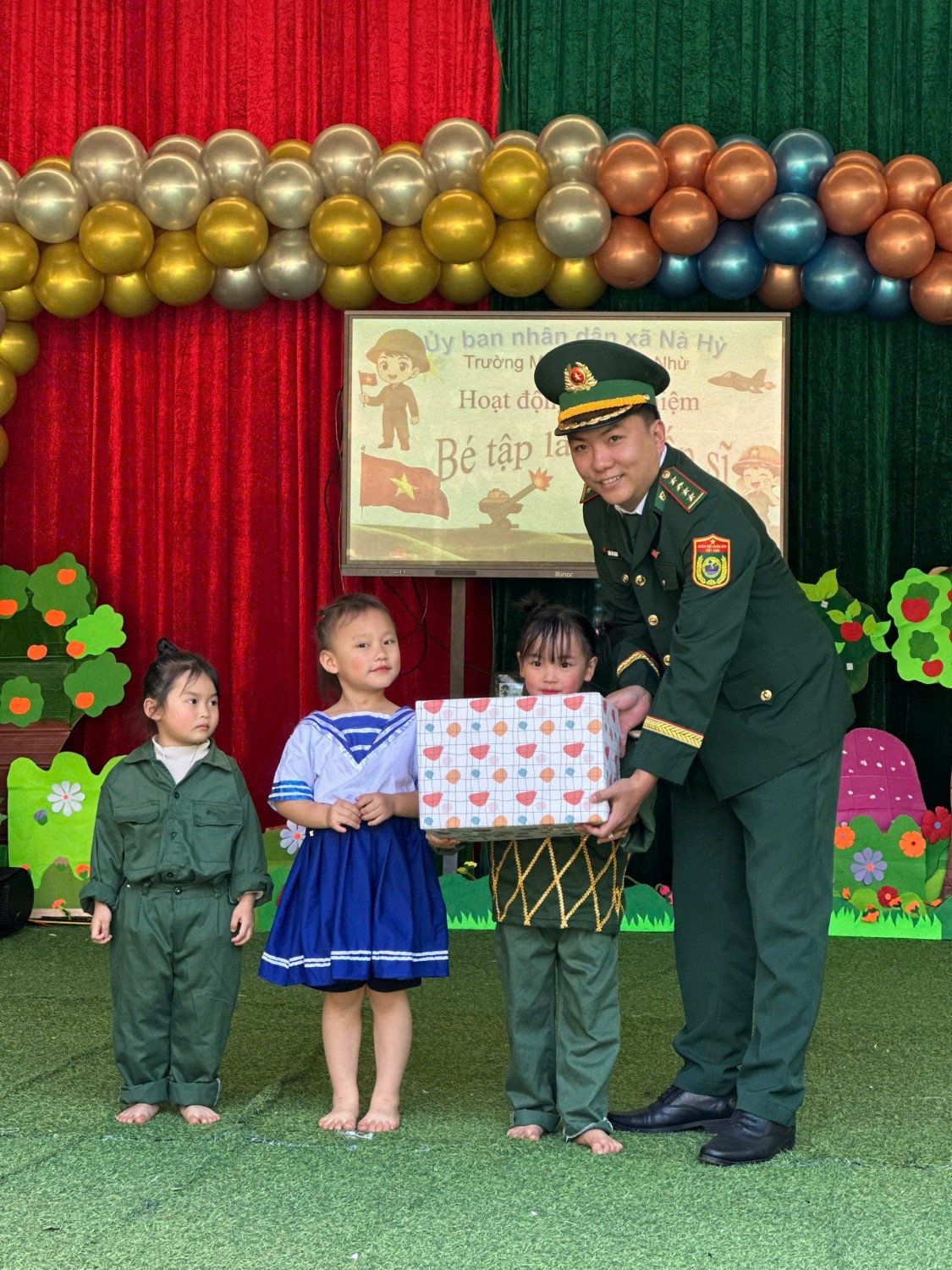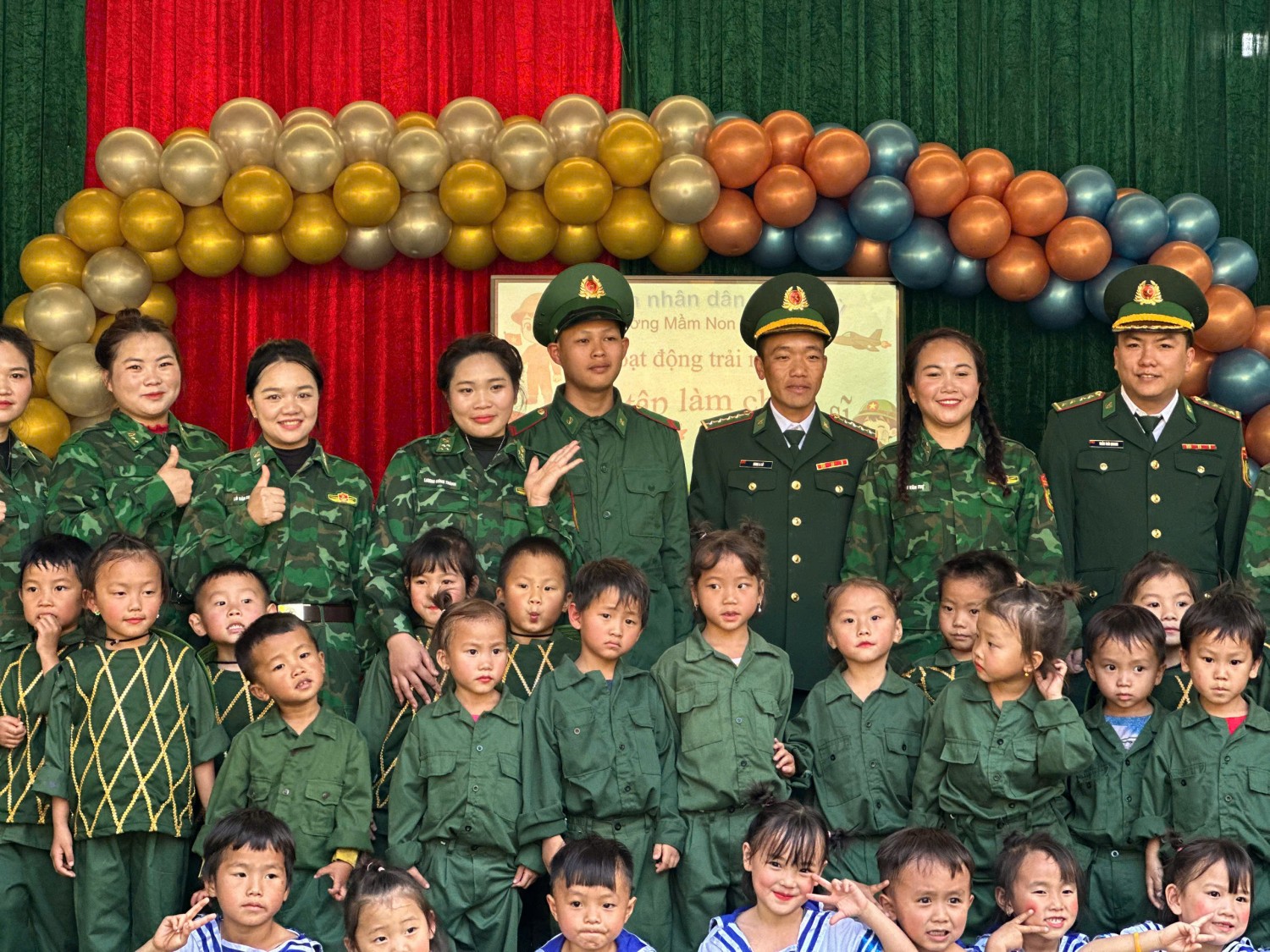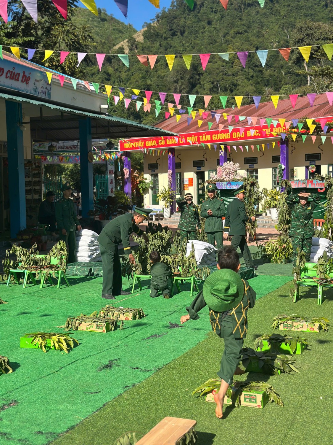 TRƯỜNG MẦM NON NẬM NHỪ TỔ CHỨC CHƯƠNG TRÌNH “CHÚNG TÔI LÀ CHIẾN SĨ” CHÀO MỪNG 81 NĂM NGÀY THÀNH LẬP QUÂN ĐỘI NHÂN DÂN VIỆT NAM (22/12/1944 – 22/12/2025) 🌟 Hòa chung không khí thi đua sôi nổi chào mừng 81 năm Ngày thành lập Quân đội nhân dân Việt Nam (22/12), Trường Mầm non Nậm Nhừ đã tổ chức thành công chương trình trải nghiệm “Chúng tôi là chiến sĩ” dành cho các bé. Thông qua các hoạt động nhập vai làm chú bộ đội như: chào cờ, hành quân, tham gia trò chơi vận động, rèn luyện đội hình đội ngũ…, các bé đã có những trải nghiệm bổ ích, vui tươi và đầy ý nghĩa. Chương trình không chỉ giúp trẻ phát triển thể chất, kỹ năng sống, tinh thần đoàn kết mà còn góp phần giáo dục cho trẻ tình yêu quê hương, đất nước, lòng biết ơn và kính trọng đối với các chú bộ đội – những người luôn ngày đêm bảo vệ Tổ quốc. Tham gia cùng với chương trình còn có sự đồng hành của cán bộ chiến sĩ đồn Biên phòng Nậm Nhừ, Chương trình diễn ra trong không khí phấn khởi, an toàn, tạo được sự hứng thú và tham gia tích cực của trẻ, để lại nhiều kỷ niệm đẹp trong lòng các bé, các cô giáo và phụ huynh. 🌺 Trường Mầm non Nậm Nhừ xin kính chúc các đồng chí cán bộ, chiến sĩ Quân đội nhân dân Việt Nam luôn mạnh khỏe, hoàn thành xuất sắc mọi nhiệm vụ được giao